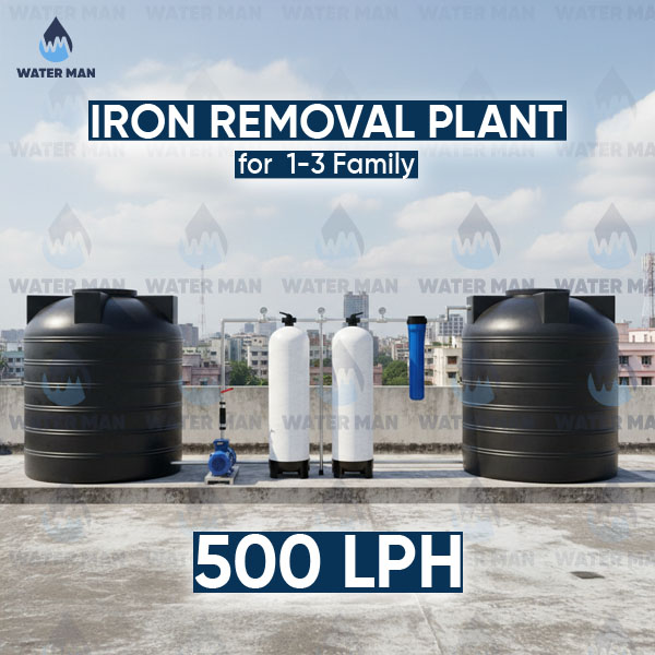 The 500 LPH Iron Removal Water Treatment Plant is engineered to meet the daily water requirements of 1–3 families. It effectively removes Iron, Manganese, Turbidity, Bad Odor, Color, and Suspended Impurities, ensuring fresh, clean, and odor-free water for all household applications.